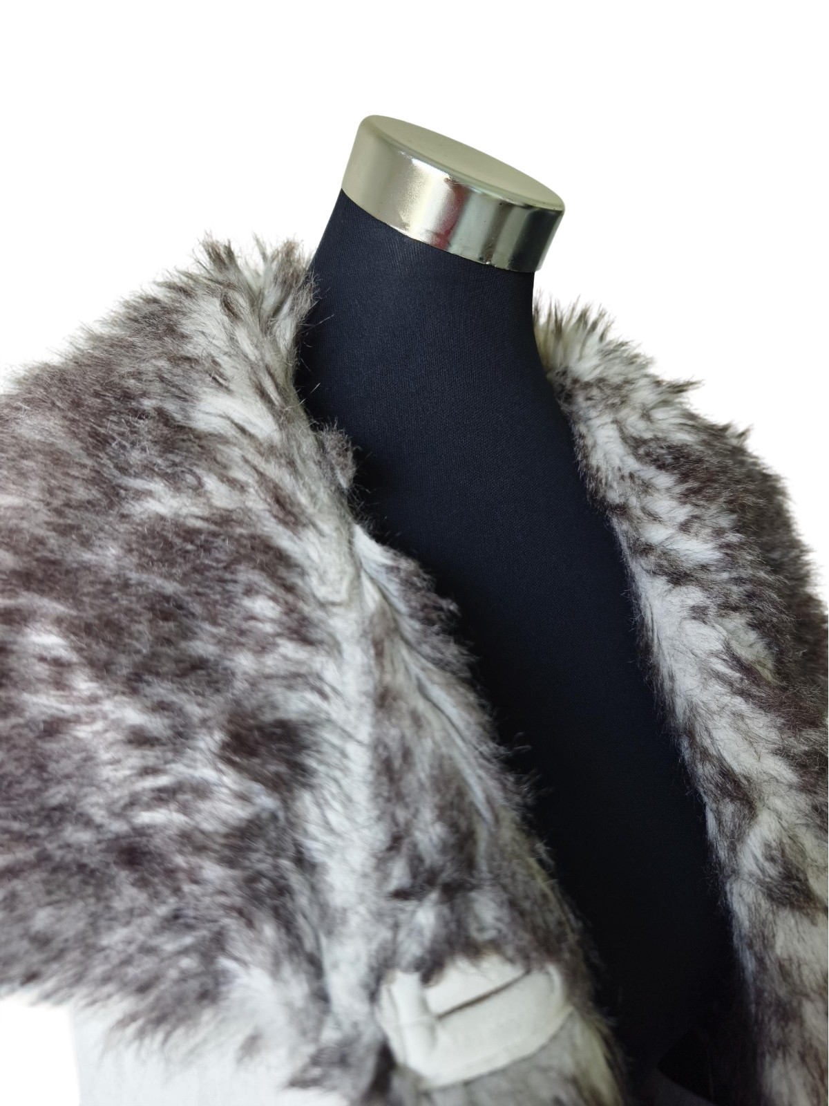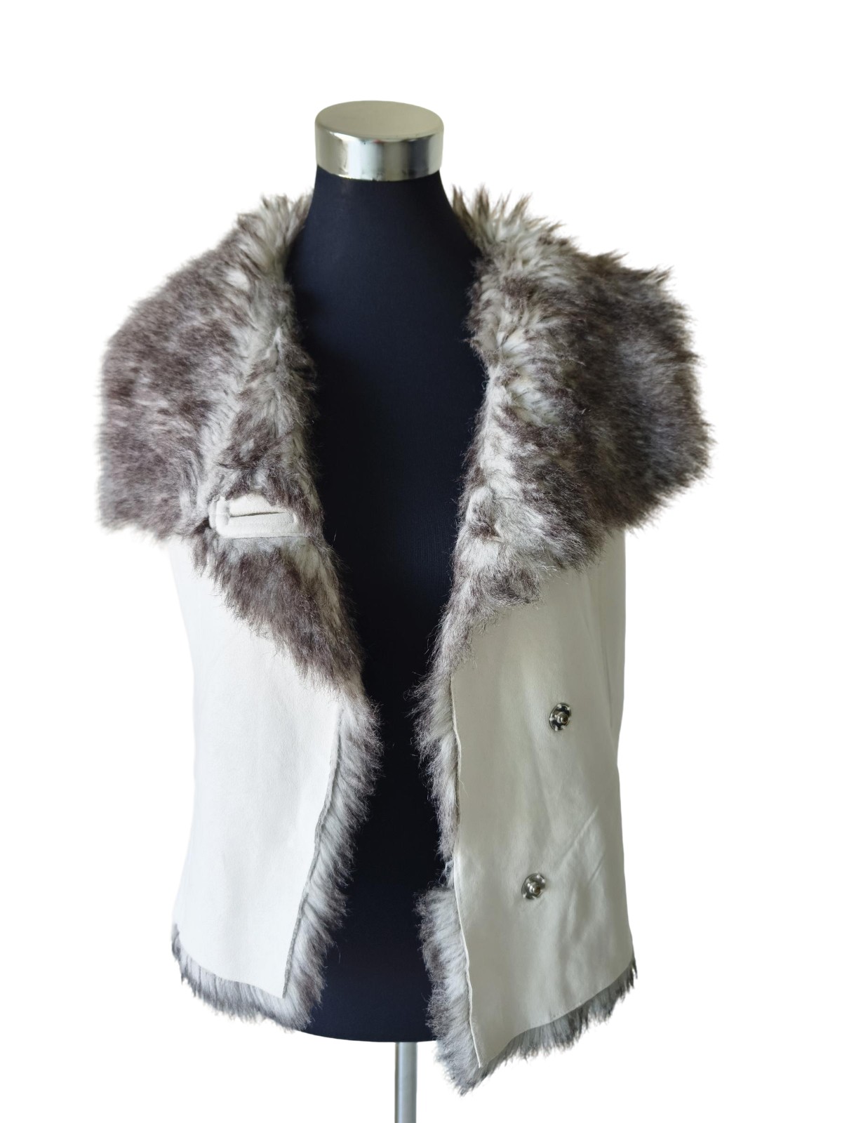 État : Occasion – Très bon état Ce gilet crème à col en fausse fourrure signé Next séduit par son contraste chaleureux et sa coupe double boutonnage. Avec sa bordure duveteuse et ses boutons fonctionnels, il incarne une élégance cosy et sophistiquée, parfaite pour les moments de détente ou les looks de charme. Taille :…