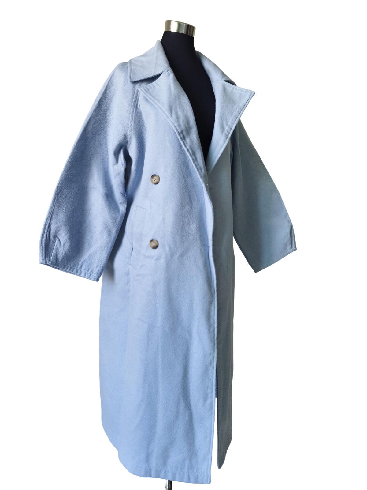 État : Occasion – Très bon état Ce manteau bleu clair signé Shein séduit par sa texture bouclée et sa coupe croisée. Avec ses larges revers, ses boutons dorés et sa silhouette longue, il incarne une élégance douillette et affirmée, idéale pour les journées fraîches ou les looks structurés. Taille : M Couleur : Bleu…