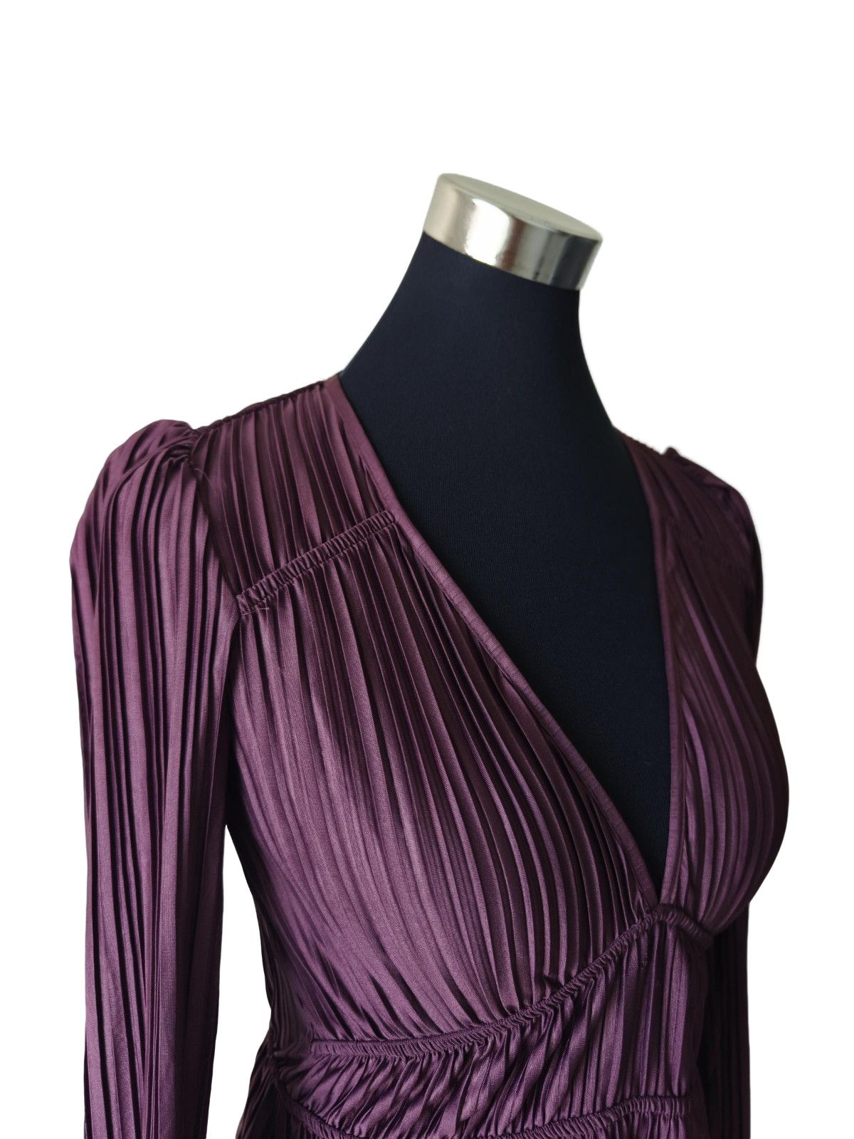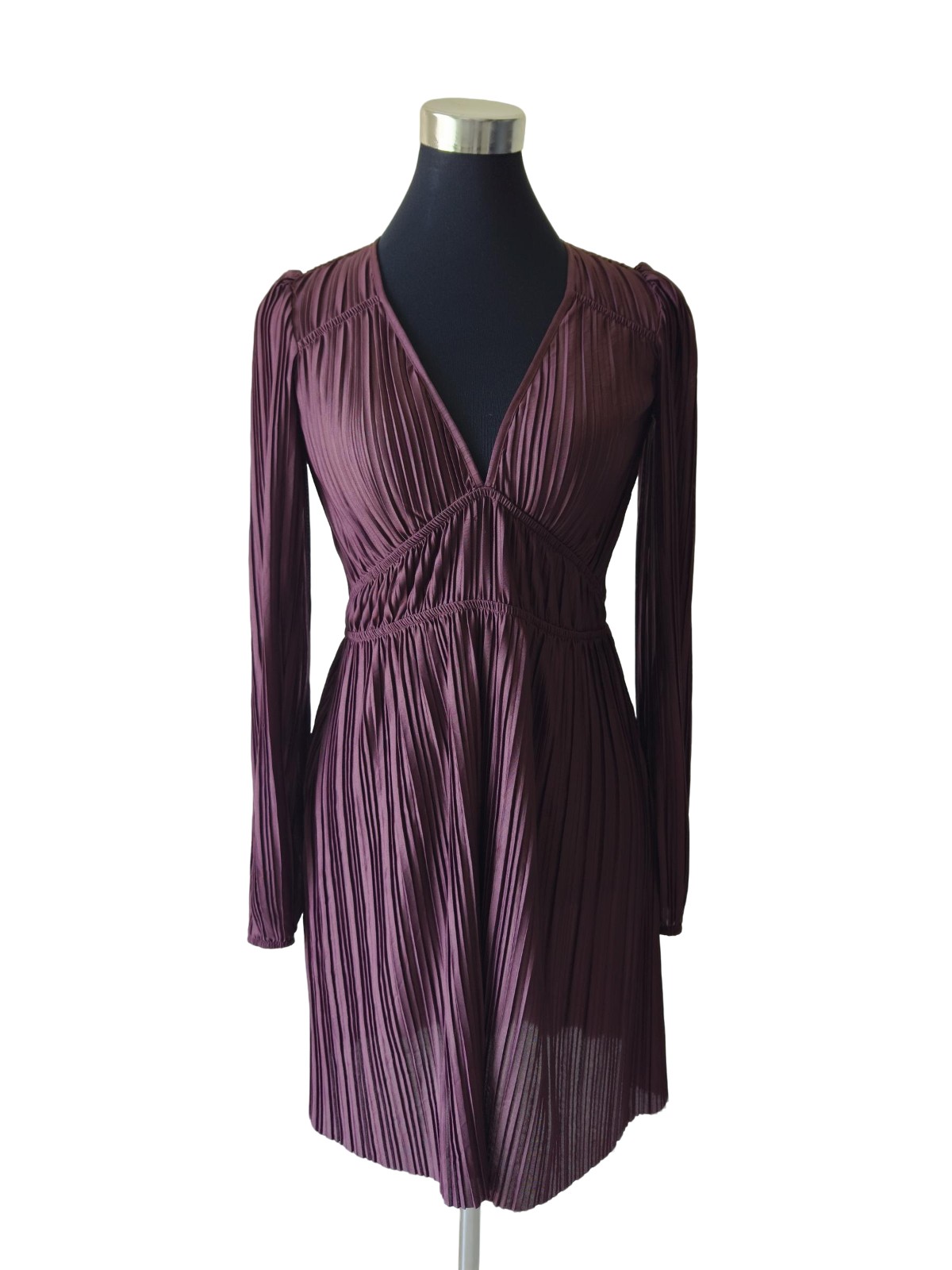 État : Occasion – Très bon état Cette robe à imprimé abstrait séduit par son jeu de couleurs profondes et sa coupe flatteuse. Avec son décolleté en V, sa taille froncée et ses manches longues, elle incarne une élégance fluide et affirmée, parfaite pour les soirées ou les journées stylées. – Taille : Standard –…