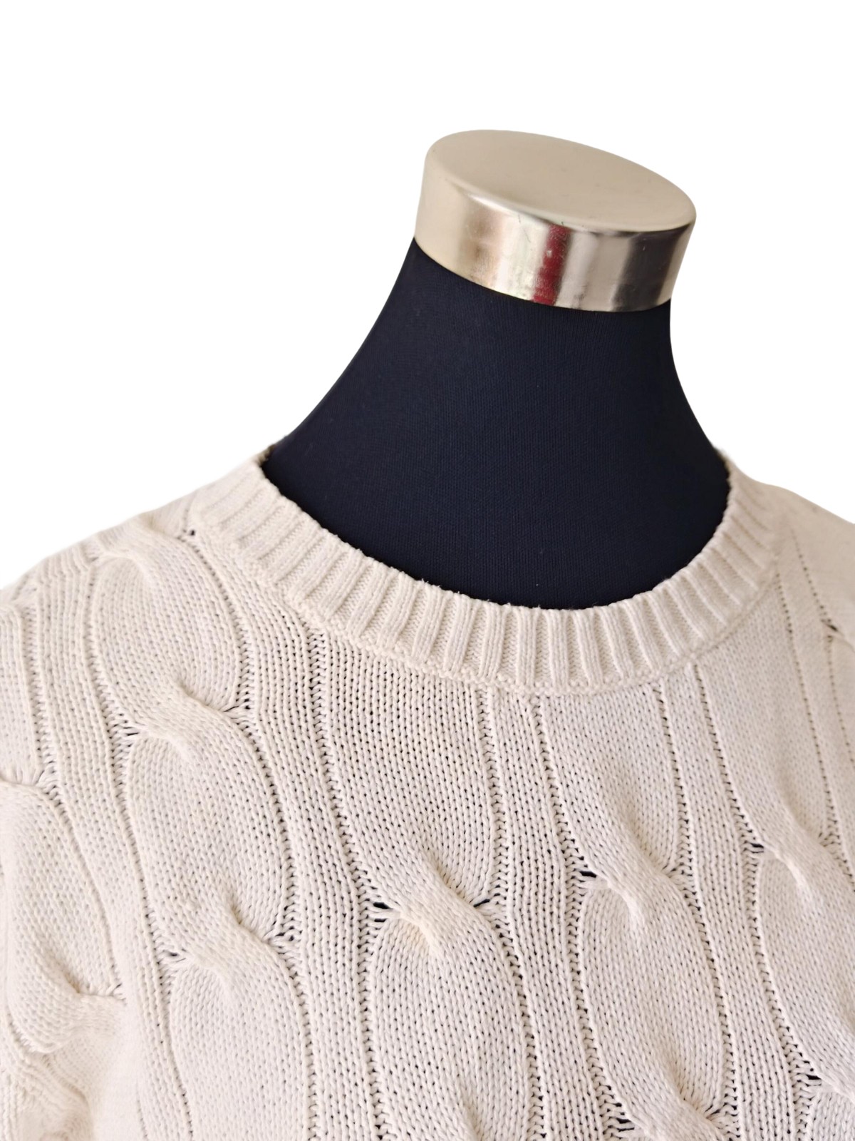Ce tricot élégant signé Marie Lund séduit par son motif ajouré raffiné et sa coupe féminine. Sa teinte douce et son design délicat en font une pièce idéale pour les journées fraîches ou les looks superposés. Taille : M Couleur : Blanc cassé Style : Élégant & décontracté Marque : Marie Lund