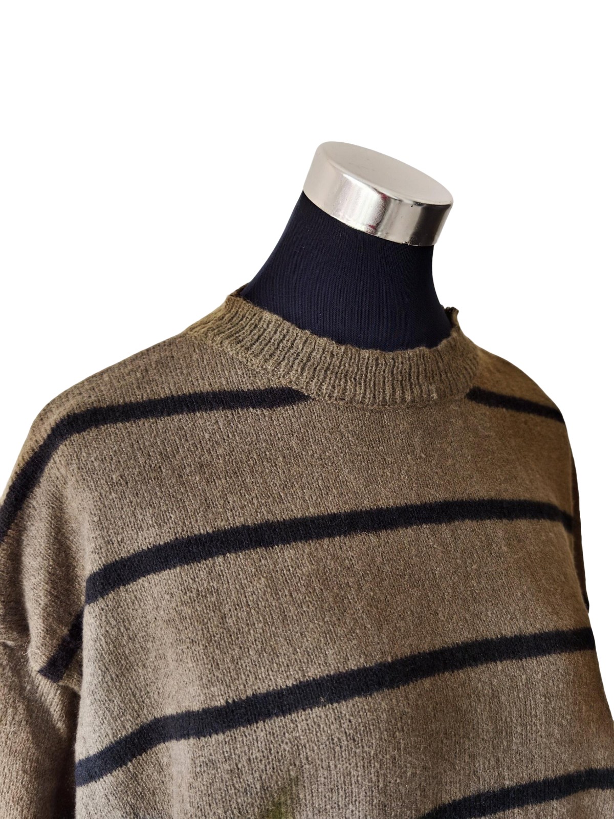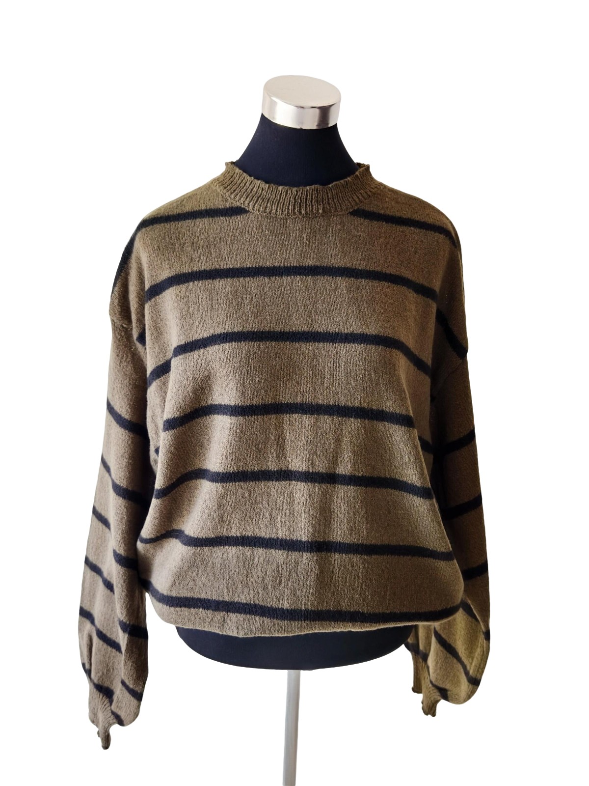 État : Occasion – Très bon état Ce tricot à imprimé léopard signé Romwe apporte une touche audacieuse et tendance à votre dressing. Sa coupe décontractée et ses rayures contrastées en font une pièce parfaite pour un look urbain affirmé. Taille : XS Couleur : Marron & noir Style : Streetwear chic Marque : Romwe