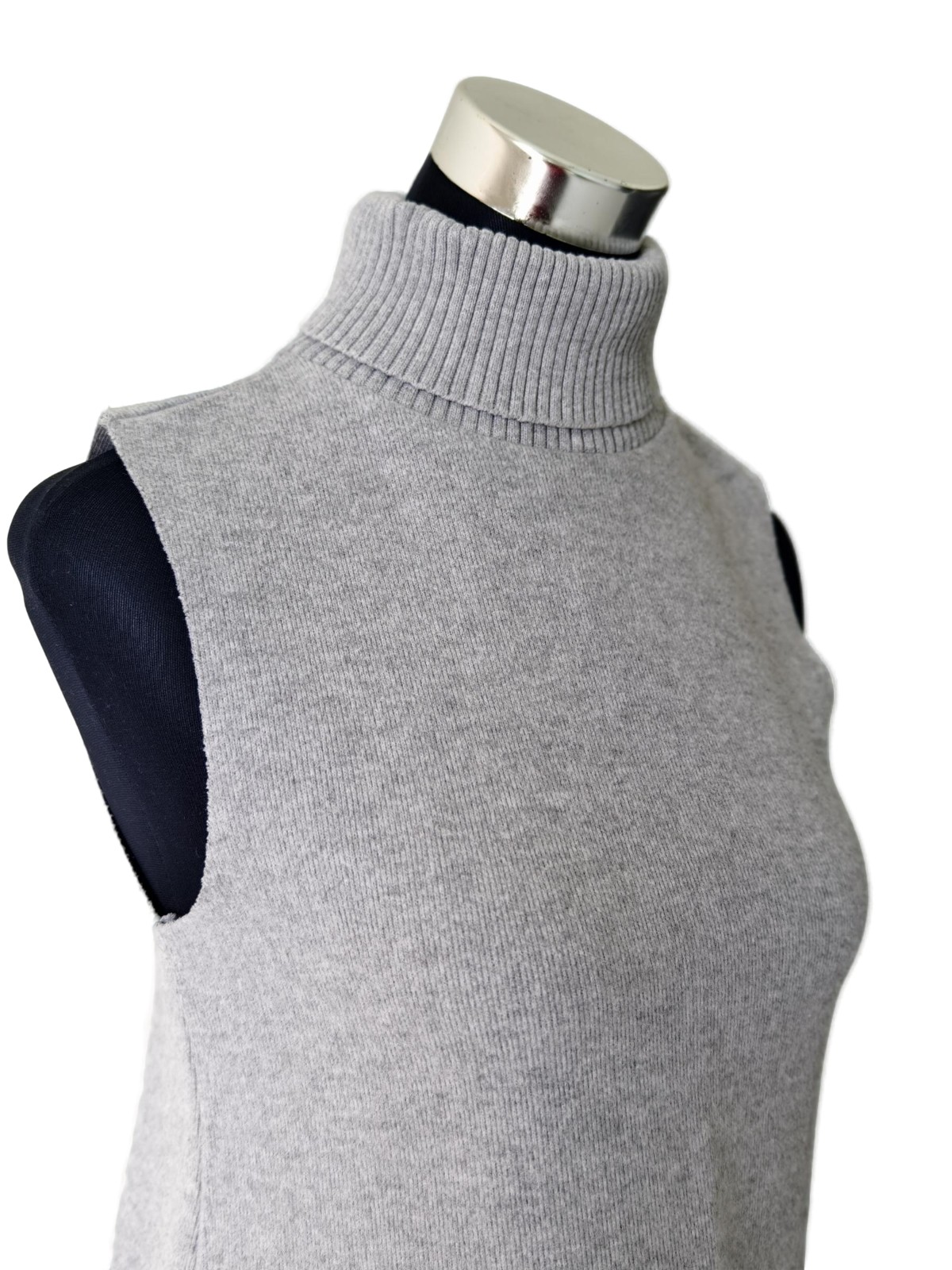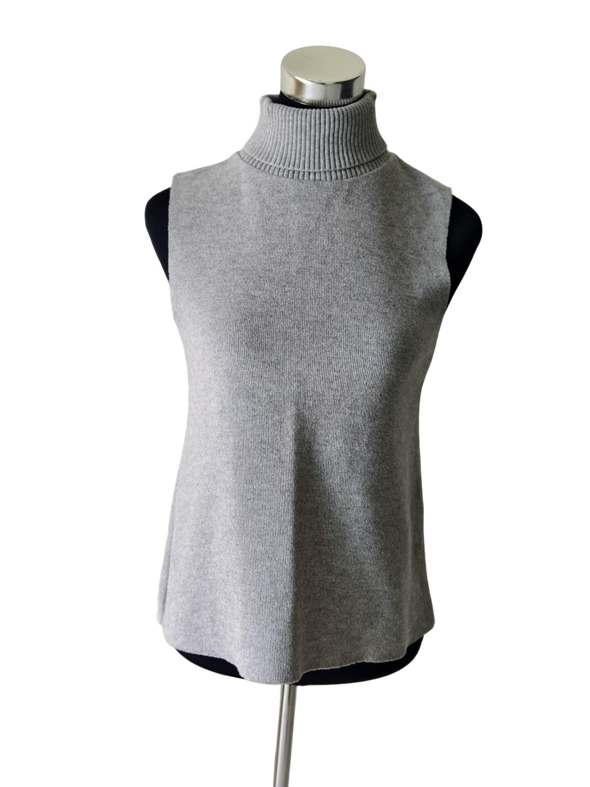 État : Occasion – Très bon état Ce tricot sans manches signé Zara joue la carte du minimalisme chic. Avec son col montant et sa coupe légèrement évasée, il apporte une touche moderne et structurée à vos tenues de mi-saison. Taille : S Couleur : Gris Style : Épuré & contemporain Marque : Zara