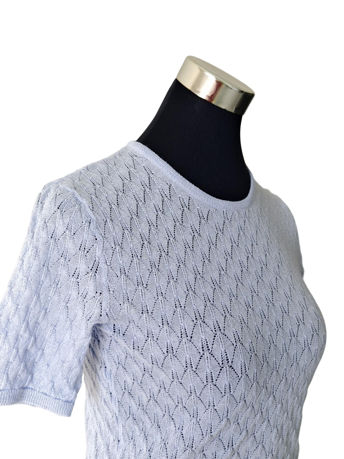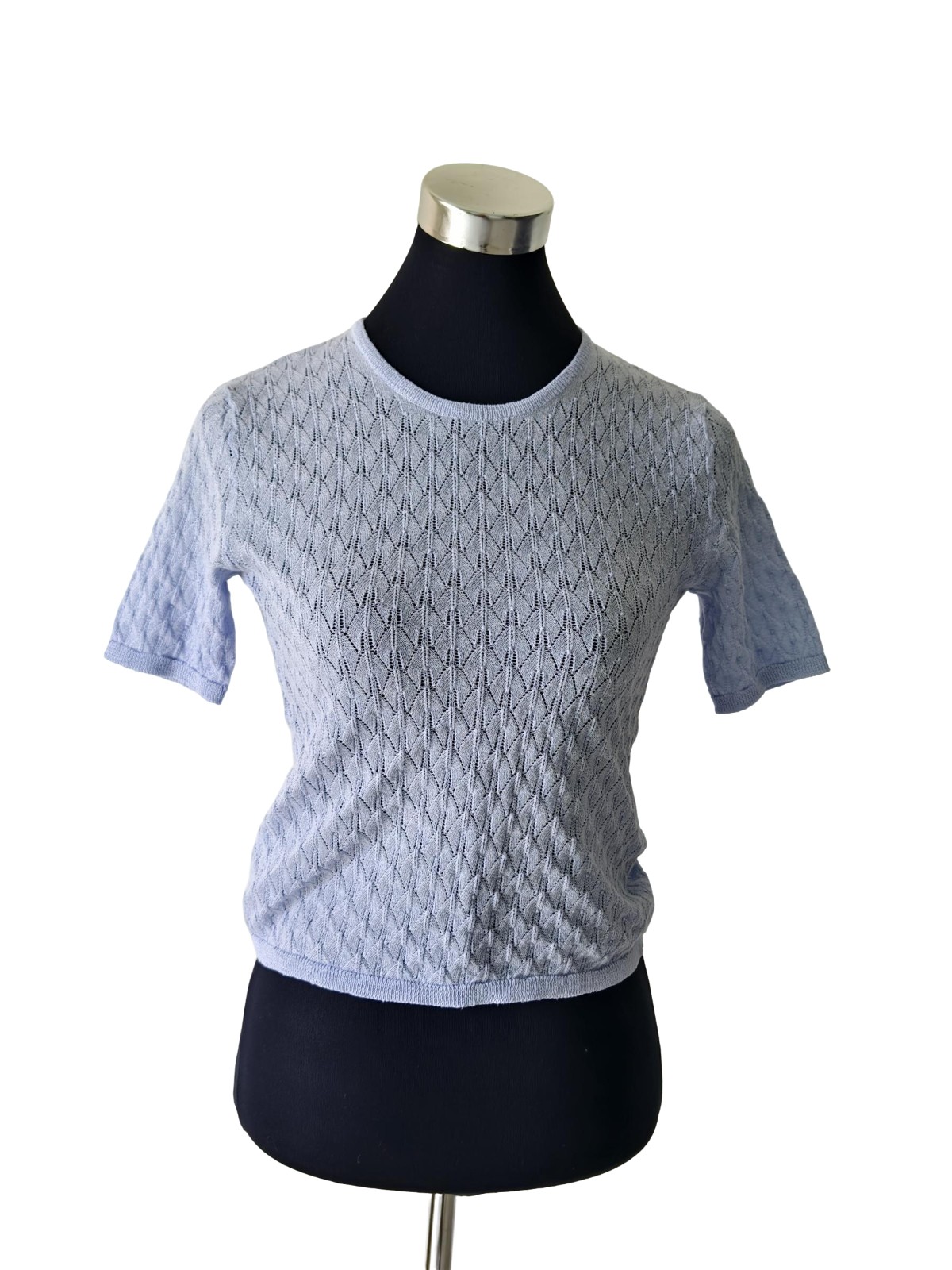 État : Occasion – Très bon état Ce tricot signé Zara séduit par sa teinte bleu ciel et sa coupe ajustée. Avec ses manches courtes et son col rond, il apporte une touche délicate et féminine à vos tenues du quotidien. Taille : S Couleur : Bleu ciel Style : Doux & raffiné Marque :…
