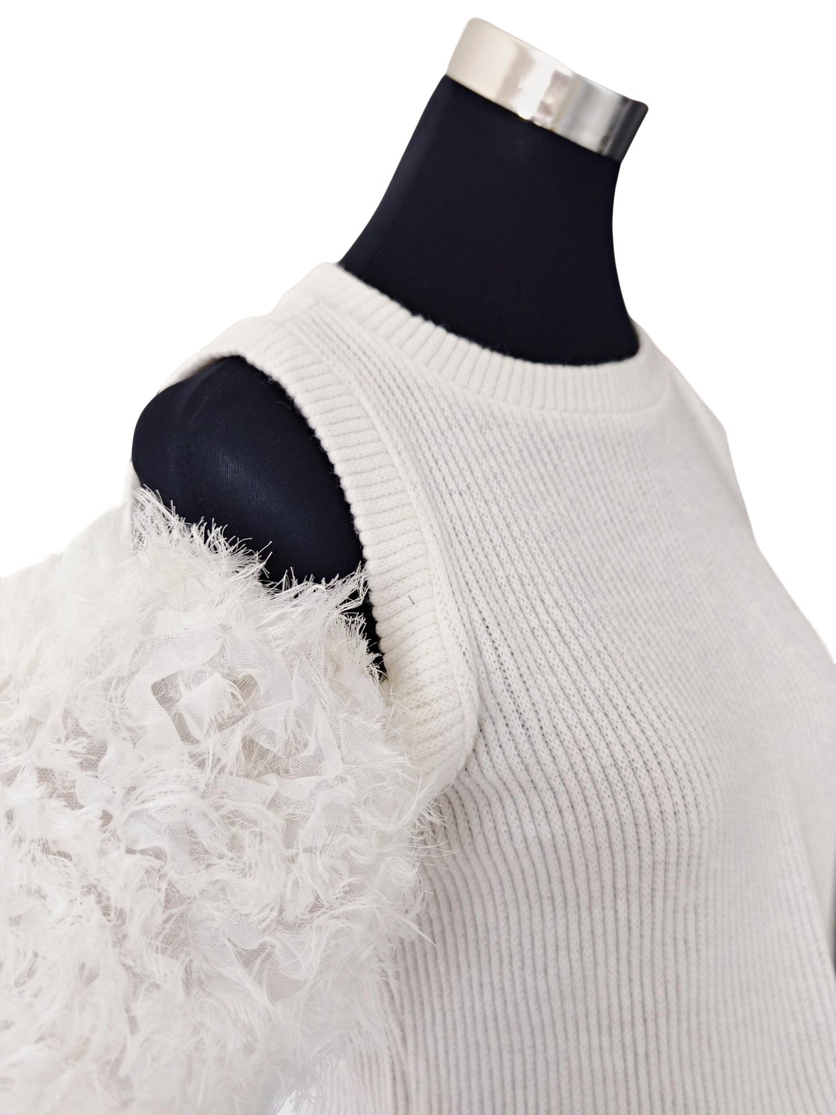 État : Occasion – Très bon état Ce tricot signé Zara revisite le classique blanc avec une touche audacieuse : ses épaules ouvertes et ses manches duveteuses lui donnent une allure moderne et affirmée. Une pièce idéale pour celles qui aiment mixer confort et originalité. Taille : S Couleur : Blanc Style : Tendance &…